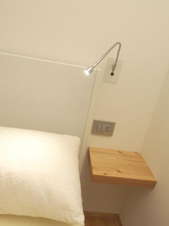 I lavori di ristrutturazione hanno interessato la trasformazione di una soffitta in un confortevole bilocale per le vacanze. Con la realizzazione del balcone e due ampie vetrate si è creato un forte rapporto con l’esterno…lo sguardo riesce ad accarezzare i ripidi pendii coltivati a prato ed i caratteristici muretti a secco. Nella scelta dei materiali è prevalso l’uso del larice per la realizzazione dei pavimenti, dei rivestimenti e dei mobili.